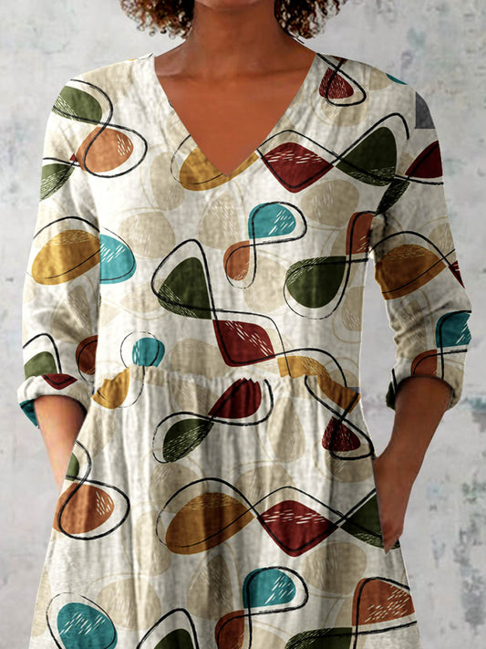 Women's Abstract Geometric Pattern Art Print Casual Linen V-neck Shirt