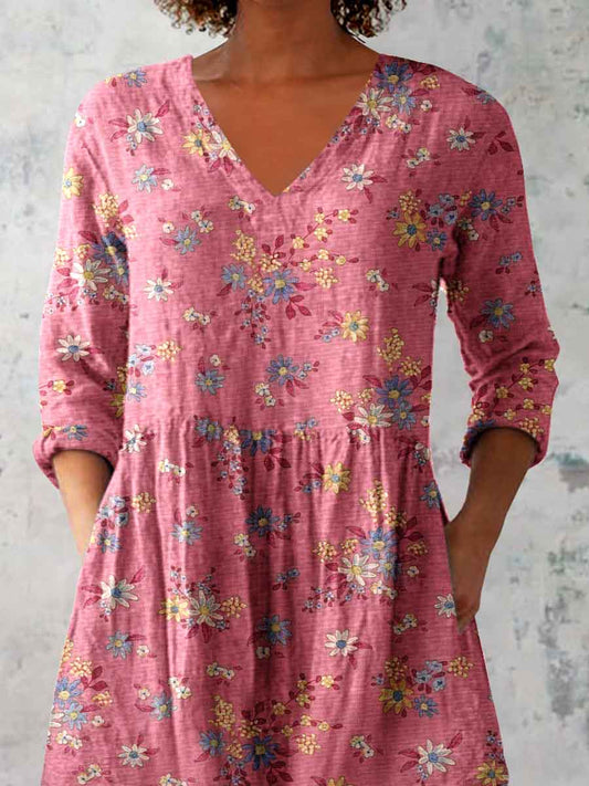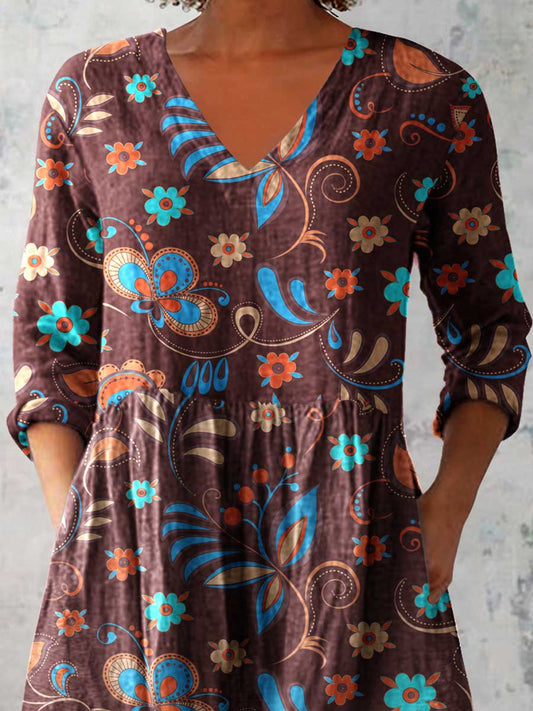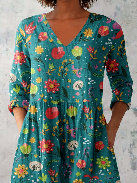 Women's Elegant Floral Pattern Cotton and Linen Top