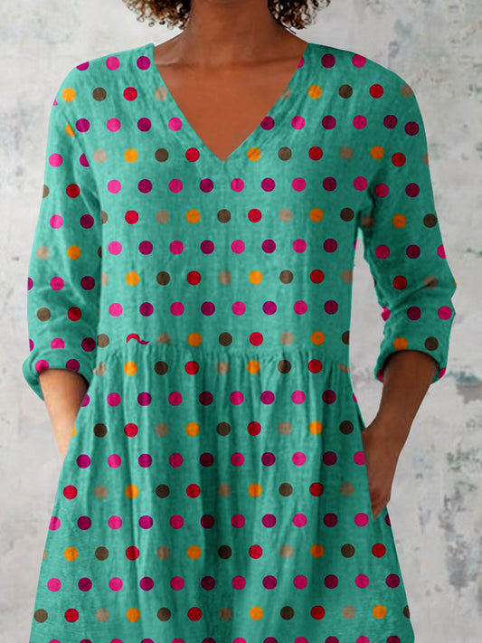 Women's Elegant Polka Dot Round Neck Cotton and Linen Top