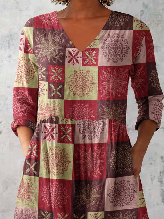 Women's Geometric Pattern Art Print Casual Cotton Linen V-neck Shirt