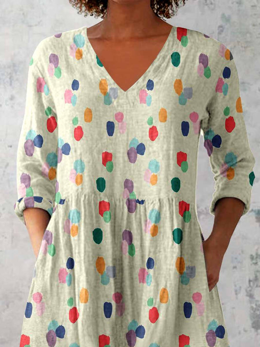 Women's Irregular Geometric Art Print Casual Linen V-neck Shirt