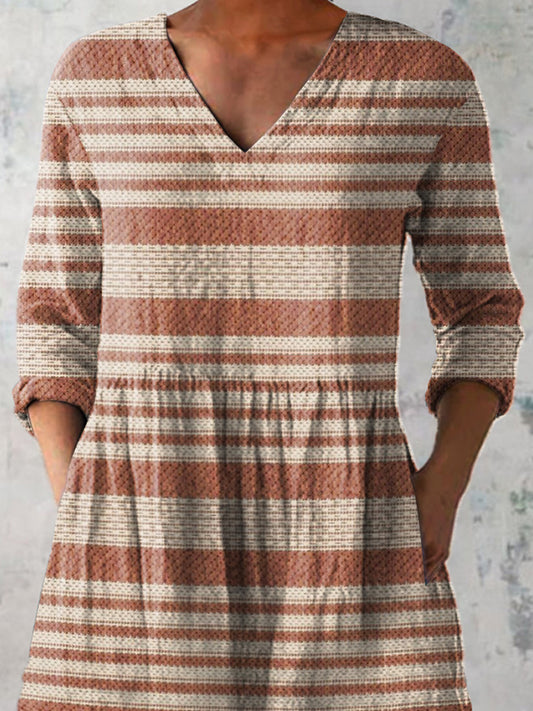 Minimalist Strip Pattern Printed Women's Casual Linen V-Neck Shirt