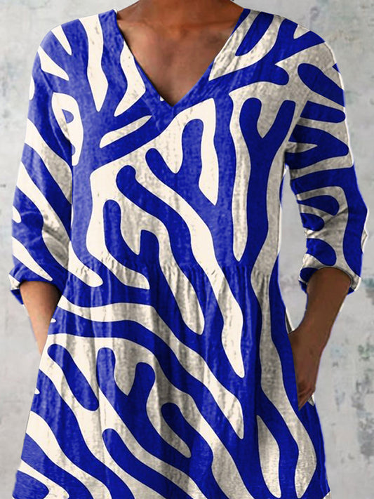 Simple Geometric Art Printed Women's Casual Linen V-Neck Shirt