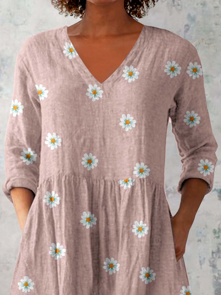 Women's Elegant Floral Print Pattern Cotton and Linen Top