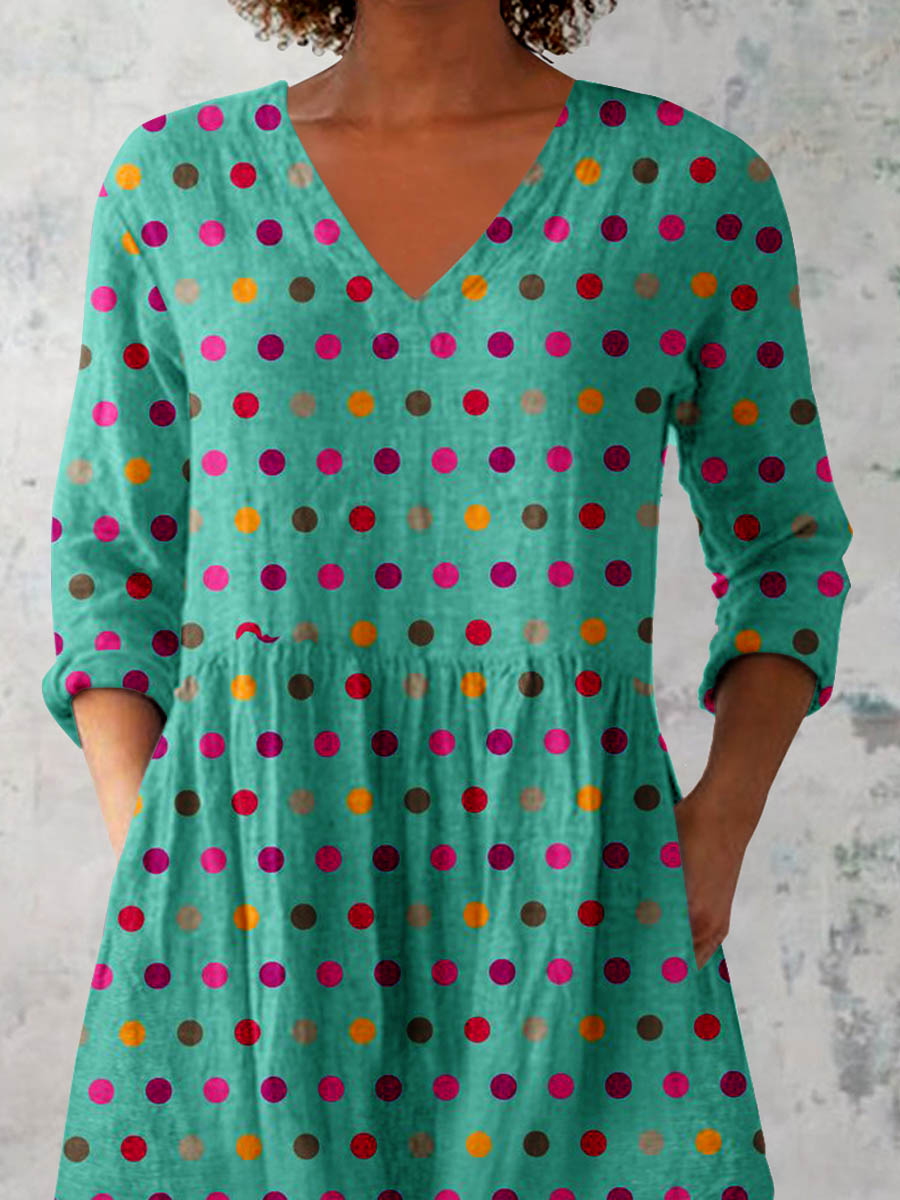 Women's ElegantPolka Dot Pattern Cotton and Linen Top
